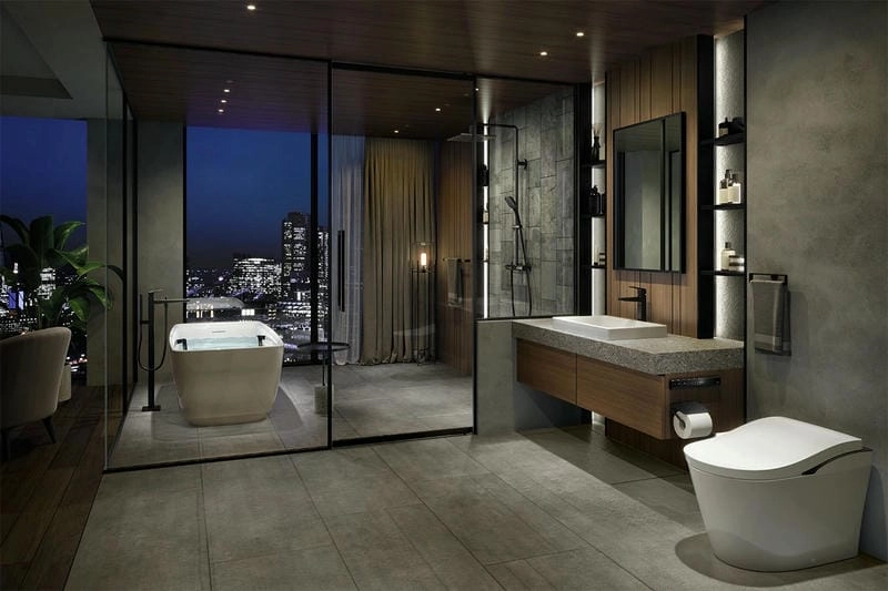 - Bồn cầu thông minh: Với các tính năng tự động rửa, sấy khô, sưởi ấm nắp ngồi mang lại sự tiện nghi tối đa.