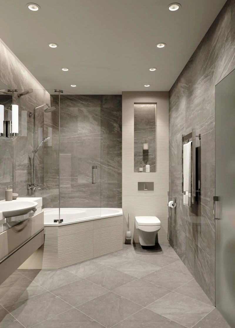 - Phân chia khu vực rõ ràng: Tách biệt khu vực tắm vòi sen, bồn tắm, bồn cầu và lavabo để đảm bảo sự tiện nghi và riêng tư.
