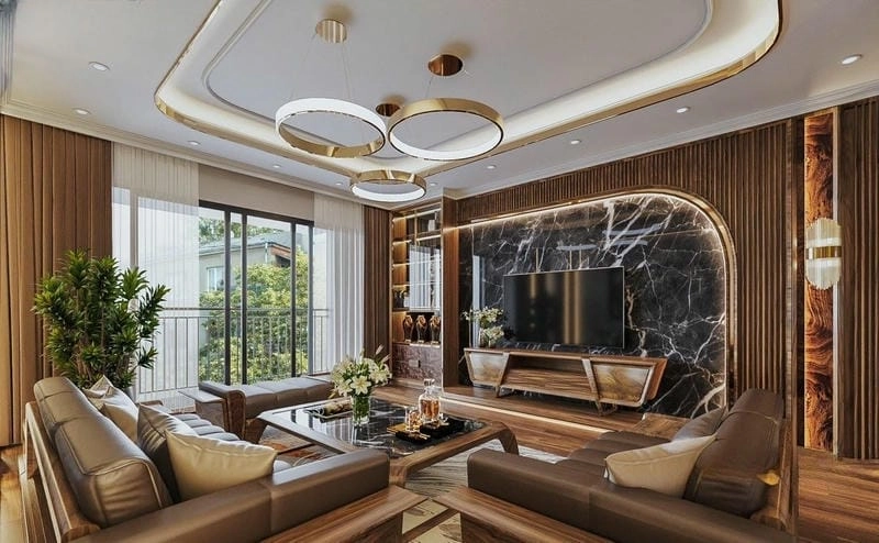 Khác với trần bê tông thông thường, trần thạch cao mang đến sự linh hoạt cao trong thiết kế, cho phép kiến trúc sư và gia chủ thỏa sức sáng tạo với nhiều hình khối, đường nét và kết hợp ánh sáng, tạo nên một không gian phòng khách vừa đẹp mắt, vừa sang trọng và hiện đại.